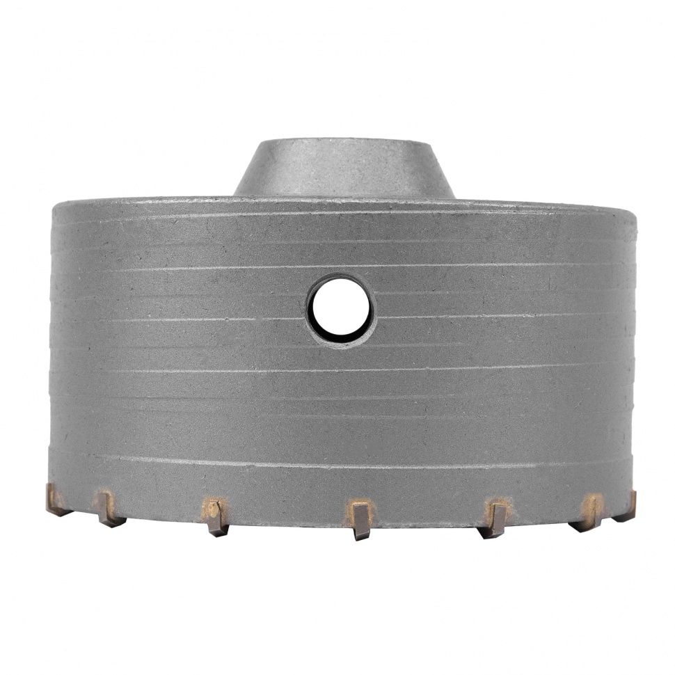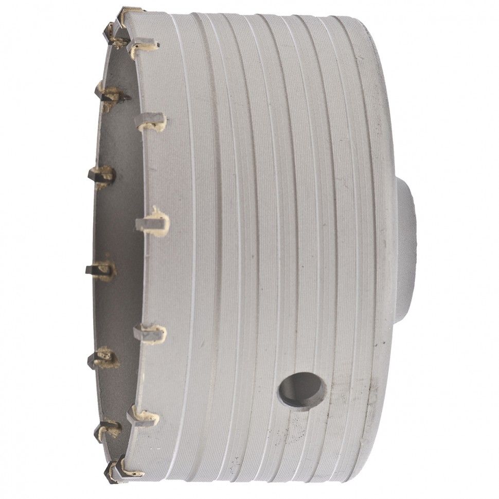 Буровая коронка Matrix 70392 с посадкой M22, диаметром 115 мм, рассчитана на сверление отверстий в бетоне, кирпиче, граните, природном и искусственном камне. Устанавливается на ударные дрели или перфораторы с патронами под хвостовик SDS-Plus или SDS-Max. Коронка позволяет получить большие отверстия, поэтому пригодится для монтажа розеток, выключателей и прокладки труб. ПреимуществаПрочность и высокий ресурс — корпус выполнен из углеродистой стали, а зубья — из твердого сплава ВК8. Эффективность — спиральная канавка на корпусе обеспечивает улучшенный отвод продуктов сверления, что снижает нагрузку на перфоратор и повышает скорость работы. Функциональность — к коронке можно подобрать центрирующее сверло с необходимым типом хвостовика Matrix 70338-70363 (приобретается отдельно).