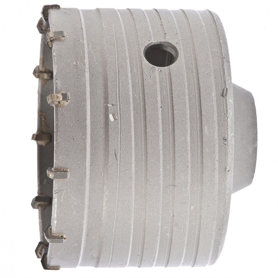 Буровая коронка M22 х 90 мм Matrix 70387 рассчитана на сверление отверстий в бетоне, кирпиче, граните, природном и искусственном камне. Устанавливается на ударные дрели или перфораторы с патронами под хвостовик SDS-Plus или SDS-Max. Коронка позволяет получить большие отверстия, поэтому пригодится для монтажа розеток, выключателей и прокладки труб. ПреимуществаПрочность и высокий ресурс — корпус выполнен из углеродистой стали, а зубья — из твердого сплава ВК8. Эффективность — спиральная канавка на корпусе обеспечивает улучшенный отвод продуктов сверления, что снижает нагрузку на перфоратор и повышает скорость работы. Функциональность — к коронке можно подобрать центрирующее сверло с необходимым типом хвостовика Matrix 70338-70363 (приобретается отдельно).