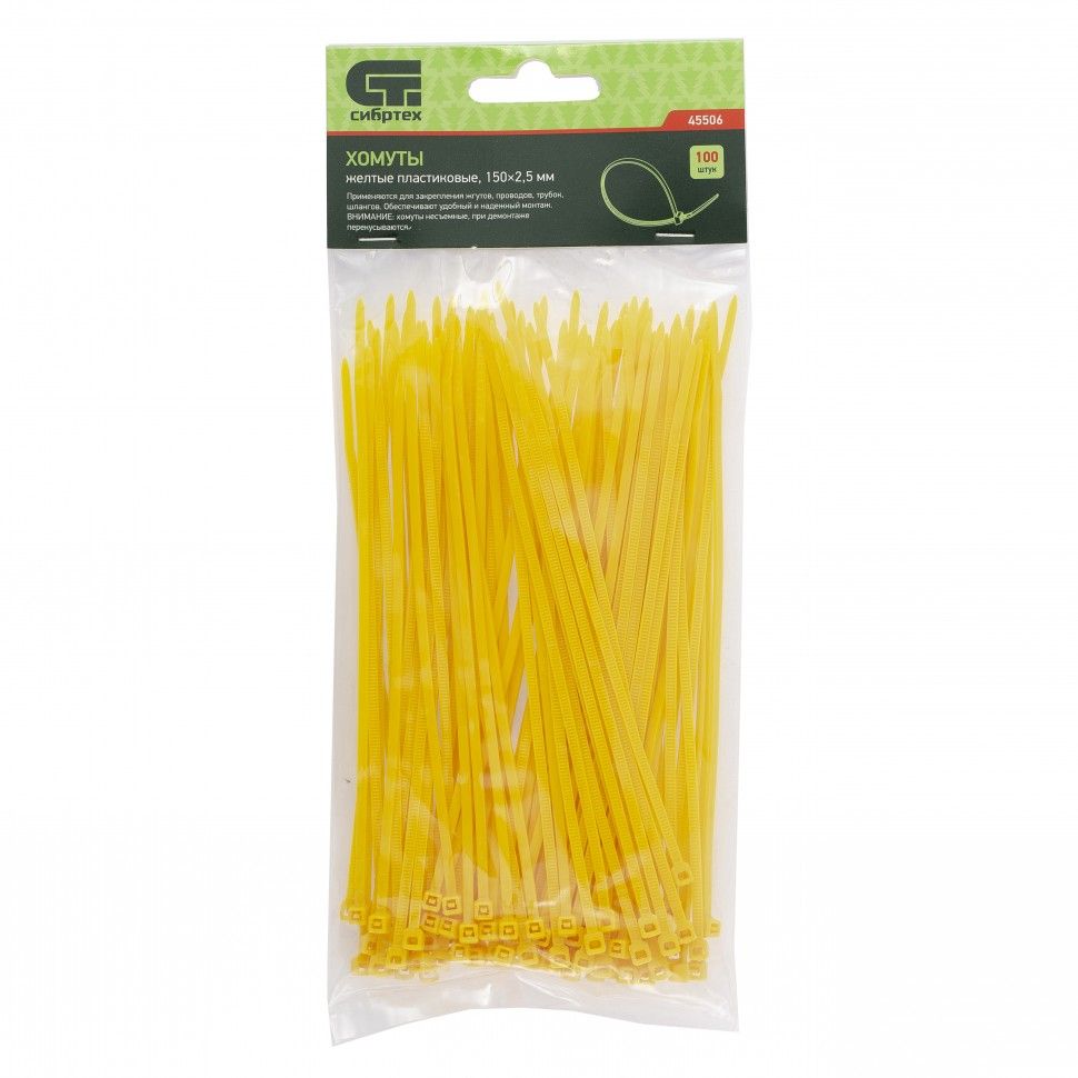Хомуты, 150 x 2.5 мм, пластиковые, желтые, 100 шт Сибртех