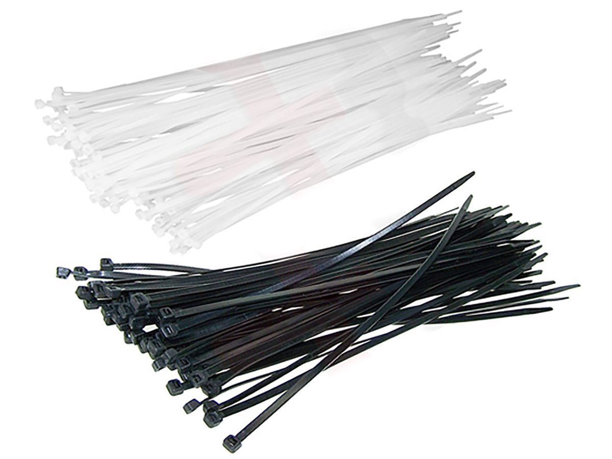 Белые пластиковые хомуты Сибртех 45539, 500 х 4,8 мм, 50 шт. в упаковке, используются для стяжки кабелей, закрепления трубок, шлангов, рекламных конструкций, а также для упаковки различных предметов. Пригодятся во время прокладки электрических и локальных вычислительных сетей, ремонта компьютерной техники, оформлении торговых стендов, комплектовании товара, будут также полезны дома, на даче и в гараже. ПреимуществаНадежные соединения — кабельные стяжки изготовлены из прочного нейлона. Возможность проведения наружных работ — хомуты устойчивы к ультрафиолету и сохраняют свои свойства при температуре от -35 до +85 ℃. 50 штук в упаковке — набора хватит надолго.