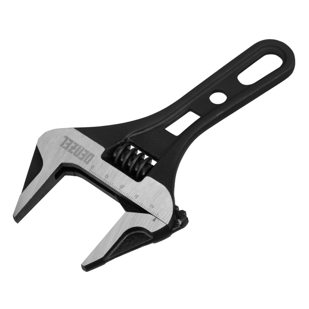 Ключ разводной кованый Denzel 15754 длиной 185 мм, из стали CrV, с укороченной рукояткой и увеличенным раскрытием губок, используется для монтажа и демонтажа крепежных элементов диаметром до 46 мм. Благодаря тонким губкам и укороченной рукоятке удобен для работы в труднодоступных местах. Имеет широкую область применения: сантехнические работы, мелкий бытовой ремонт, полупрофессиональная сфера и т. д. ПреимуществаПрочность и долговечность — ключ изготовлен из закаленной хромованадиевой стали методом ковки. Увеличенный ресурс — кованая конструкция усилена дополнительными ребрами жесткости на рукоятке. Защита от разрушения — фосфатированная поверхность инструмента не подвержена коррозии. Удобная эксплуатация — метрическая линейка на ключе помогает выставить нужный размах зева. Возможность подвесного хранения — в рукоятке предусмотрено специальное отверстие.