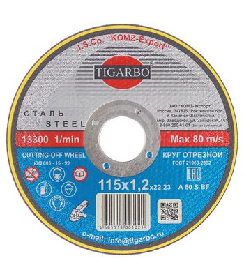 Круг отрезной 230x2,5x22,23 ст (15шт.уп.) Тигарбо
