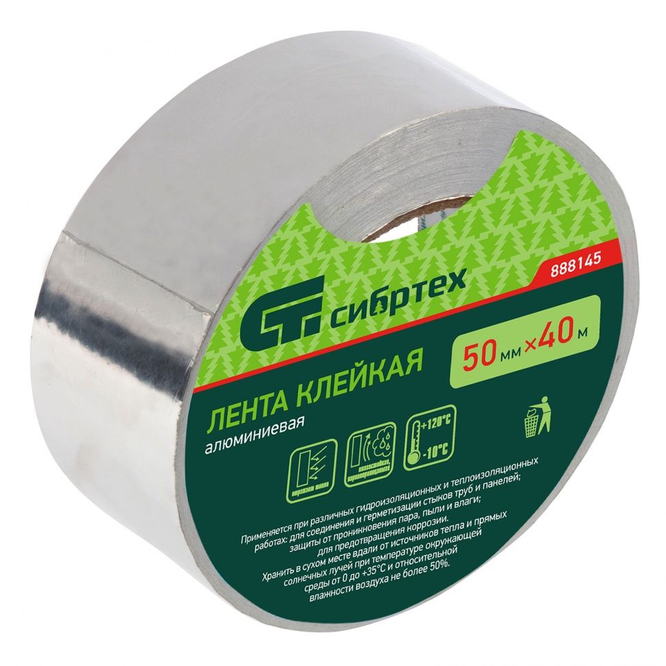 Лента клейкая алюминиевая, 50мм х 40м// Сибртех