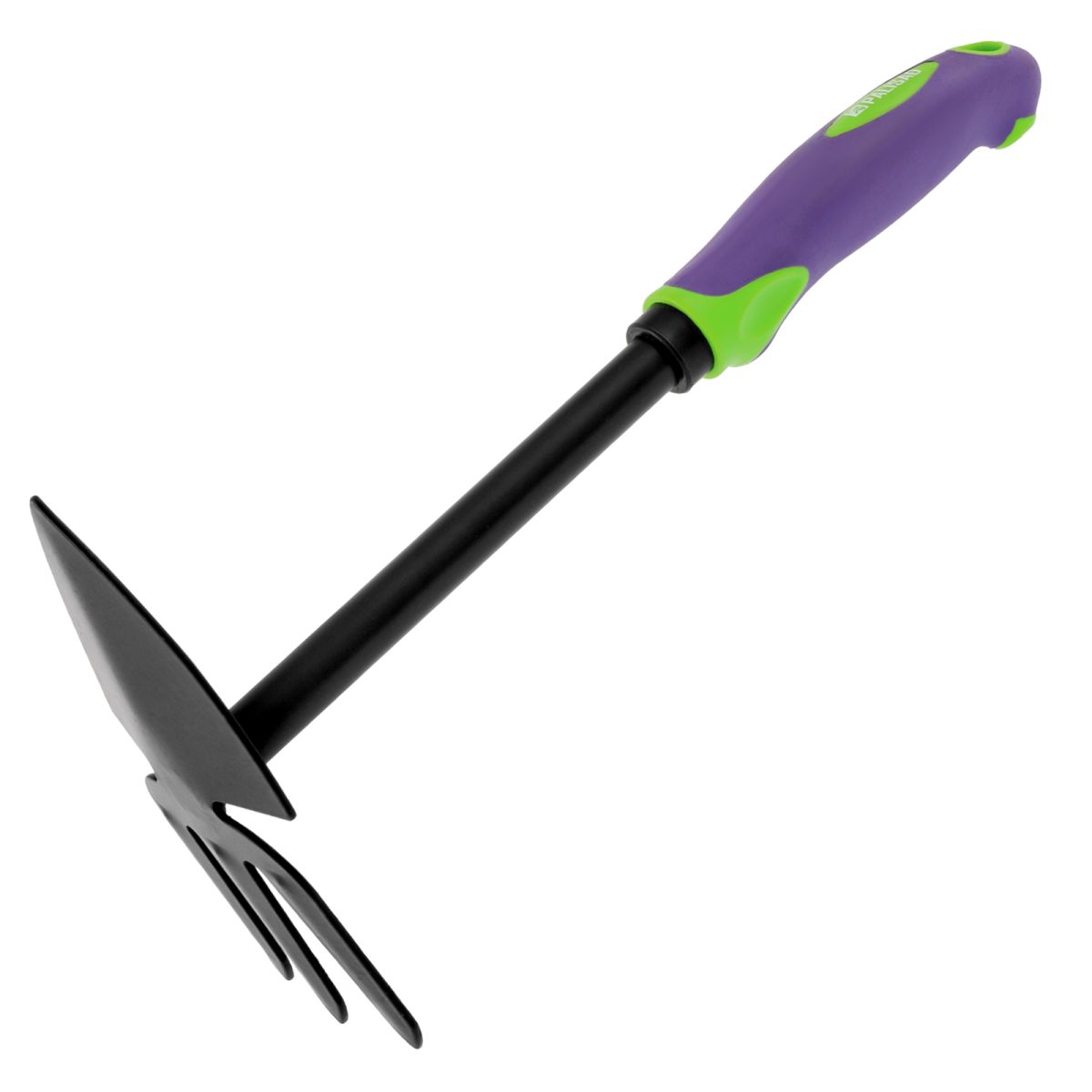 Мотыжка комбинированная с эргономичной двухкомпонентной рукояткой. Ширина рабочей части 75 мм, общая длина 300 мм. Предназначена для рыхления, аэрации почвы и прополки на небольших грядках и клумбах. ПреимуществаПорошковое покрытие рабочей части защищает от коррозии и налипания земли в процессе работы. Эргономичная рукоятка снижает утомляемость руки.