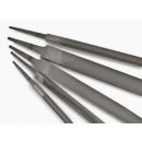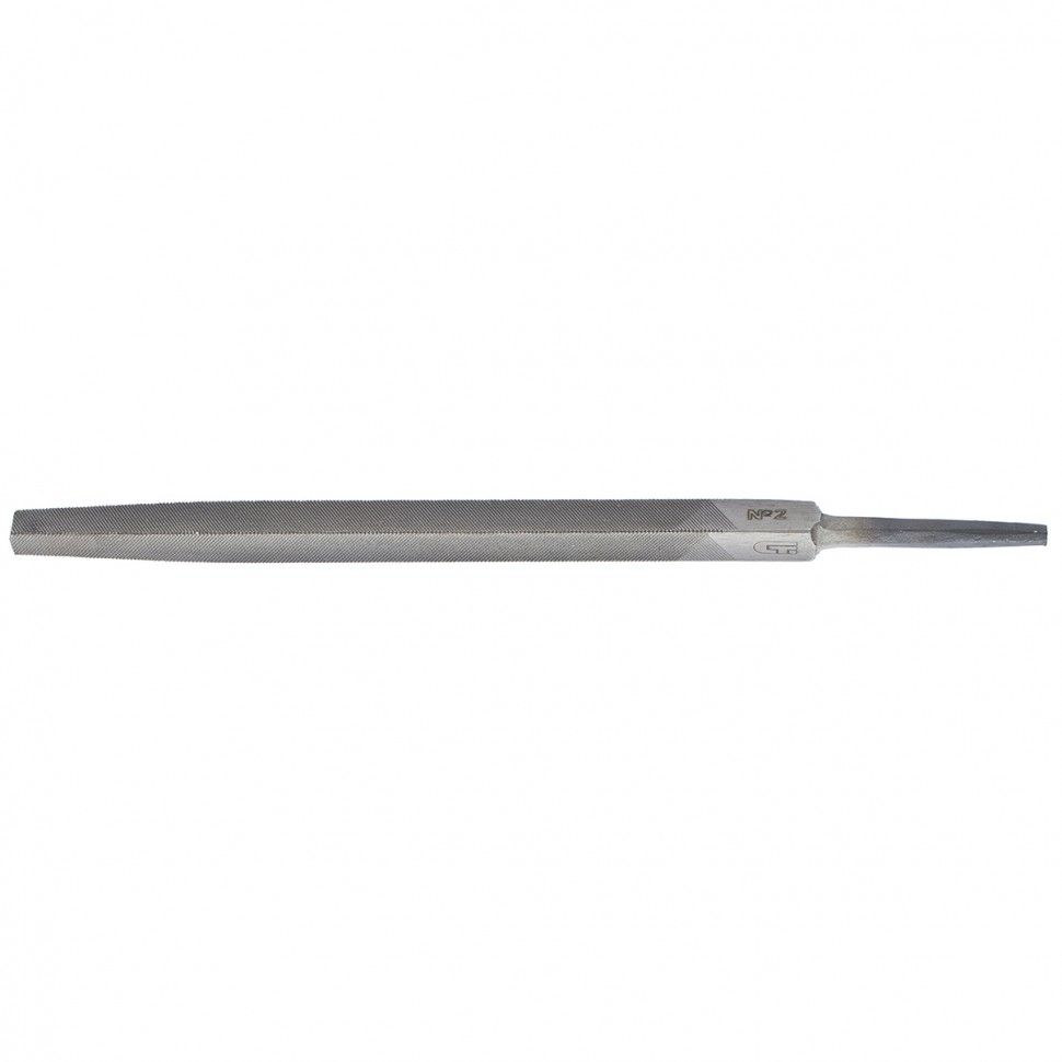 Трехгранный напильник Сибртех 160527 из стали У13А, с полотном длиной 150 мм и насечкой №2, предназначен для опиливания металлических деталей и доводки их до нужного размера или формы. Используется после применения драчевого напильника. Инструмент оптимален для обработки пазов, граней, внутренних углов и треугольных отверстий. Пригодится профессионалу и любителю слесарного дела. ПреимуществаИзносостойкость — инструмент из высокоуглеродистой стали У13А подходит для длительного применения. Чистая обработка — режущая часть со средней насечкой №2 включает 13-25 зубьев на 10 мм длины и снимает до 0,08 мм металла, оставляя гладкую поверхность. Быстрый поиск нужного инструмента — на корпусе имеется гравировка с указанием номера насечки и марки стали.