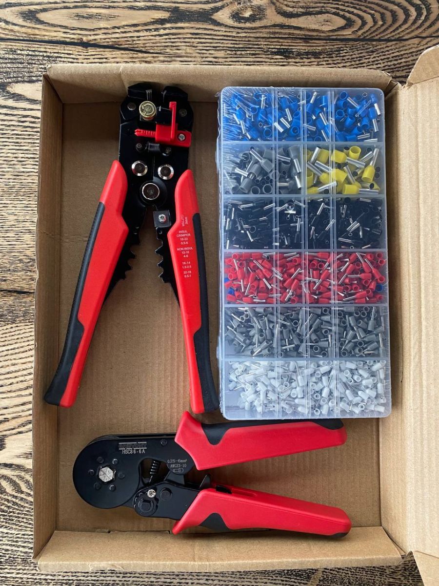 Обжимные клещи, стриппер для снятия изоляции и наконечники клемм 1900шт