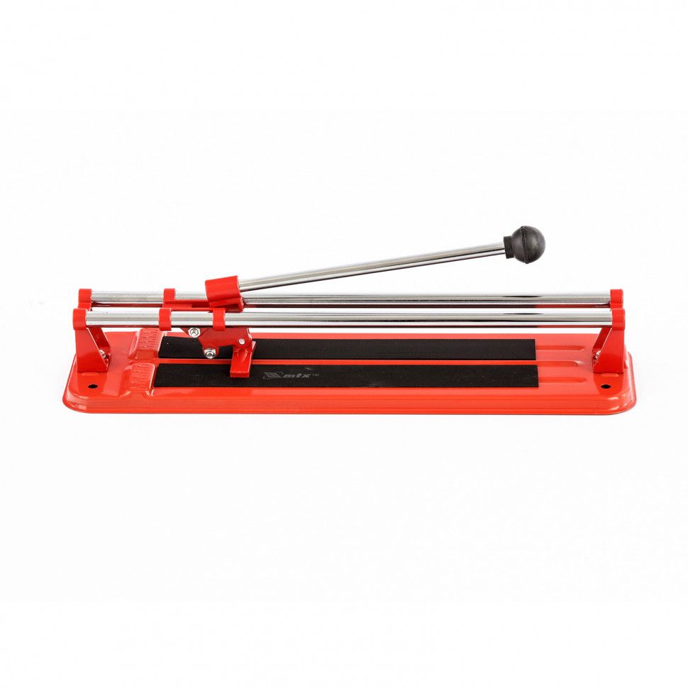 Плиткорез MTX 87616 — инструмент для работы с керамической плиткой размером до 350 х 12 мм. Упрощает и ускоряет резку, позволяет получать ровный и аккуратный срез. ПреимуществаВысокий ресурс — режущий ролик изготовлен из твердосплавного материала ВК-8. Возможность фиксации на поверхности рабочего стола — в основании плиткореза имеются специальные отверстия. Плавный ход — каретка свободно передвигается благодаря двум направляющим из высококачественной инструментальной стали с антикоррозийным покрытием. Высокое качество работы — стальное основание обеспечивает устойчивость плиткореза, мягкие амортизирующие накладки предотвращают смещение плитки. Комфортная работа — на рукоятке имеется специальный захват.