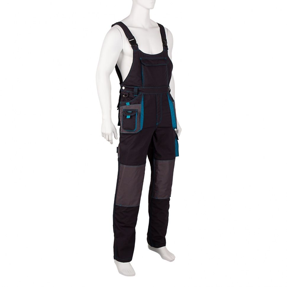 Полукомбинезон Gross 90355 размера XXL рассчитан на рост 188-191 см и предназначен для защиты рабочего от механических повреждений, ветра и пыли. Может применяться в отапливаемых помещениях или на улице в теплое время года. Изготовлен из смесовой ткани с 35%-м содержанием хлопка, которая не препятствует воздухообмену, поэтому в спецодежде комфортно работать. На 65% ткань состоит из полиэстера, что обеспечивает устойчивость к износу. Полукомбинезон необходим строителям, электрикам, садовникам, сотрудникам автосервисов, будет полезен и рабочим других специальностей. ПреимуществаКомфортная посадка — эластичный пояс плотно прилегает к телу, не сковывая движений. Функциональность — в 14 карманах можно разместить инструменты и необходимые мелочи, благодаря липучкам мобильный телефон и другие мелкие предметы не потеряются. Водо- и износостойкость — специальные нашивки с водоотталкивающей пропиткой защищают боковые карманы от истирания. Удобная работа — на коленной части предусмотрены карманы для амортизационных вкладышей (вкладыши приобретаются отдельно).