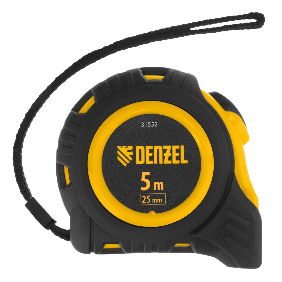 Рулетка 5м х 25мм, обрезиненный корпус, автоматическая фиксация Denzel