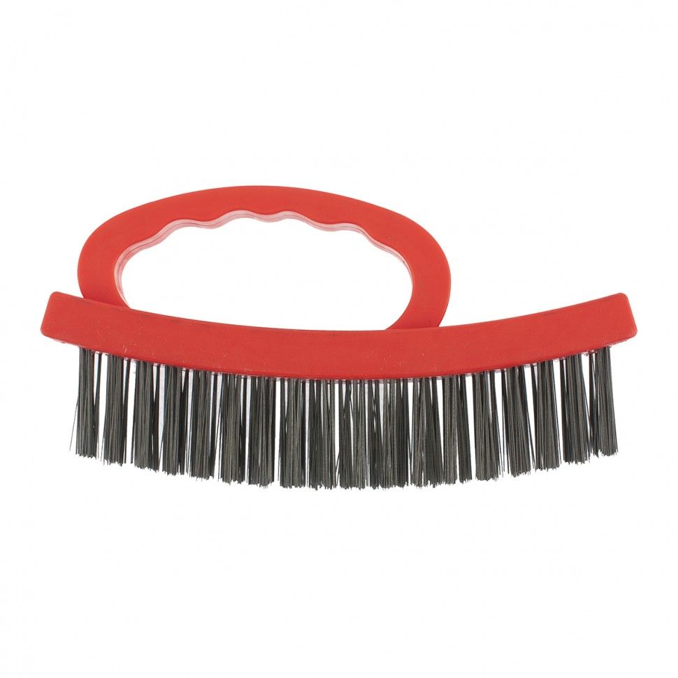 Плоская зачистная 4-рядная щетка Matrix 74818, пластиковая, с рукояткой, — ручной инструмент для очистки поверхностей от старых лакокрасочных покрытий, загрязнений, ржавчины. Подходит для обработки металла, древесины, пластика и других материалов. Плотные пучки расположены в 4 ряда, что обеспечивает высокую эффективность воздействия. У щетки имеется эргономичная рукоятка с подпальцевыми выемками, что повышает комфортность работы. Щетка пригодится во время строительства и ремонта, а также будет полезна дома, на даче или в гараже. ПреимуществаИзносостойкость — щетина изготовлена из закаленной высокоуглеродистой стали. Устойчивость к коррозии — проволока покрыта масляной пленкой. Надежность — пучки крепко зафиксированы в основании, поэтому проволока не разлетается во время работы. Долговечность — рукоятка выполнена из прочного, не рассыхающегося пластика.