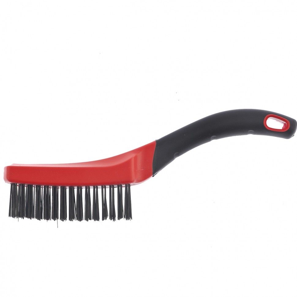 Зачистная пятирядная щетка Matrix 74835 с двухкомпонентной рукояткой очищает от ржавчины, въевшейся грязи и краски металлические, деревянные и другие поверхности. Расположенные в 5 рядов пучки проволоки обеспечивают высокое качество обработки. Изогнутая рукоятка позволяет полностью задействовать рабочую поверхность щетины. Щетка будет полезна строителю, автослесарю и домашнему мастеру. ПреимуществаВысокая производительность — щетина изготовлена из высококачественной стальной проволоки. Крепкая фиксация пучков проволоки в основании — щетина не разлетается в процессе зачистки. Надежный хват — эргономичная двухкомпонентная обрезиненная рукоятка не выскальзывает из ладони. Удобное хранение — в рукоятке имеется отверстие для подвешивания щетки.