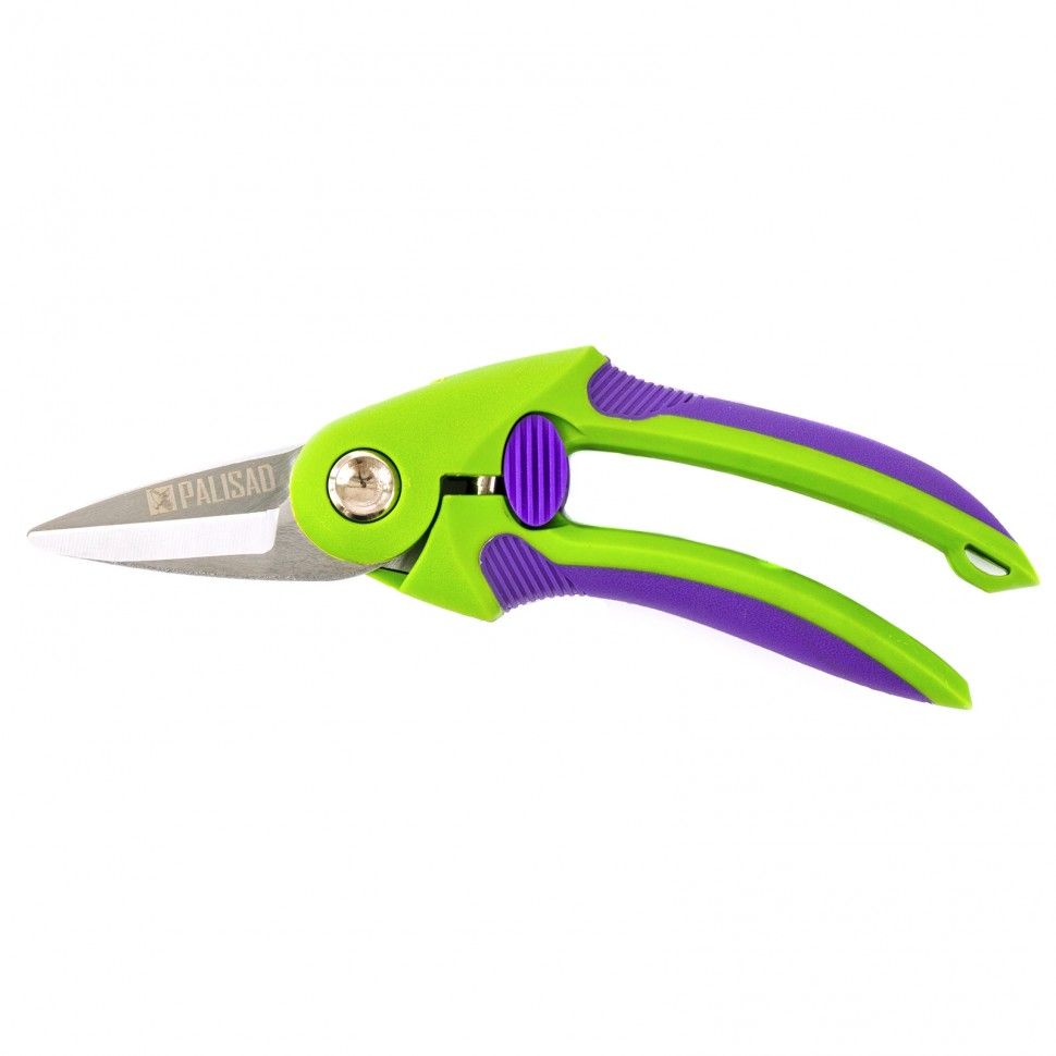 Цветочный секатор Palisad 60487 длиной 220 мм, с двухкомпонентными рукоятками, — садовый инвентарь для срезания молодых побегов и стеблей диаметром до 10 мм, а также оформления топиарных скульптур и крон бонсай. Срез получается ровным и чистым, поскольку лезвия движутся в параллельных плоскостях. Секатор может использоваться для разрезания картона, ткани, бумаги, подвязочного материала. Будет полезен дома и на даче. ПреимуществаПрочность — лезвия изготовлены из высокоуглеродистой стали. Высокий ресурс — лезвия прошли индукционную закалку, а режущие кромки остро заточены. Коррозионная стойкость — на рабочие поверхности нанесено хромированное покрытие. Возможность подгонки лезвий — регулировочный винт позволяет изменять плотность их смыкания. Долговечность — рукоятки из полипропилена устойчивы к воздействию ультрафиолета. Комфорт во время работы — рукоятки обрезинены и не выскальзывают из ладони.