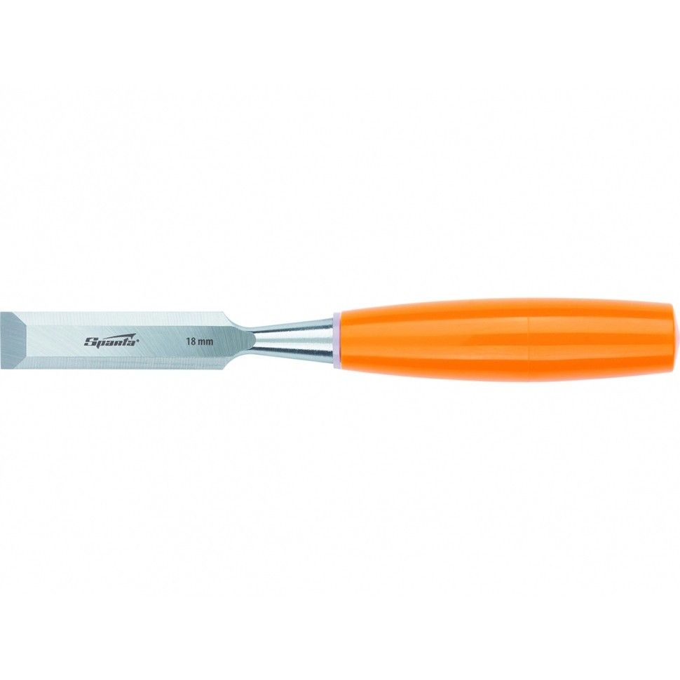 Плоская стамеска Sparta 244235 с шириной лопасти 20 мм и пластиковой рукояткой предназначена для тонких работ по дереву. Позволяет зачищать пазы и кромки, снимать фаски, вырезать небольшие прямоугольные углубления. Стамеска применяется в столярном деле, мебельном производстве, а также будет полезна в быту. ПреимуществаПрочность — полотно выполнено из качественной конструкционной углеродистой стали 55. Высокая режущая способность — твердость стамески составляет 50-55 HRC на длине 2/3 рабочей части полотна, лезвие заточено на специальном оборудовании под углом 20-35°. Быстрый поиск — благодаря яркому цвету рукоятки стамеска хорошо заметна среди других инструментов. Комфортная работа — прочную пластмассовую рукоятку удобно держать в руке.