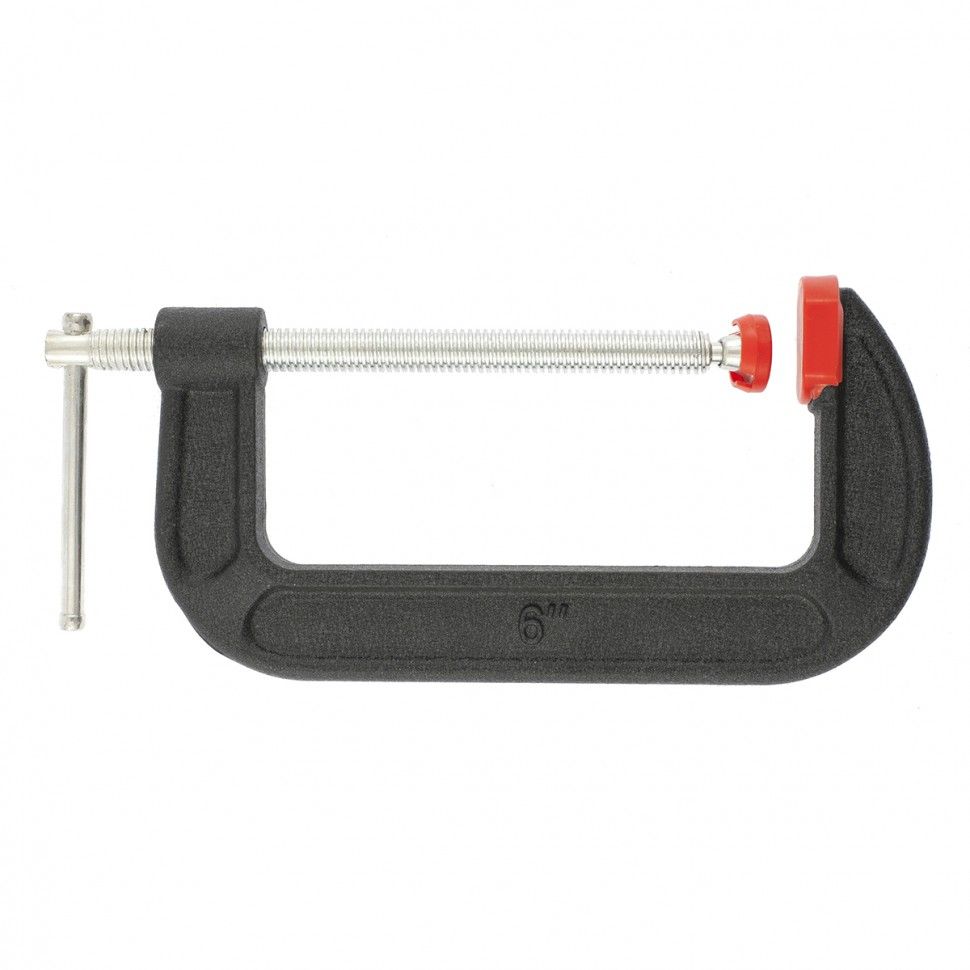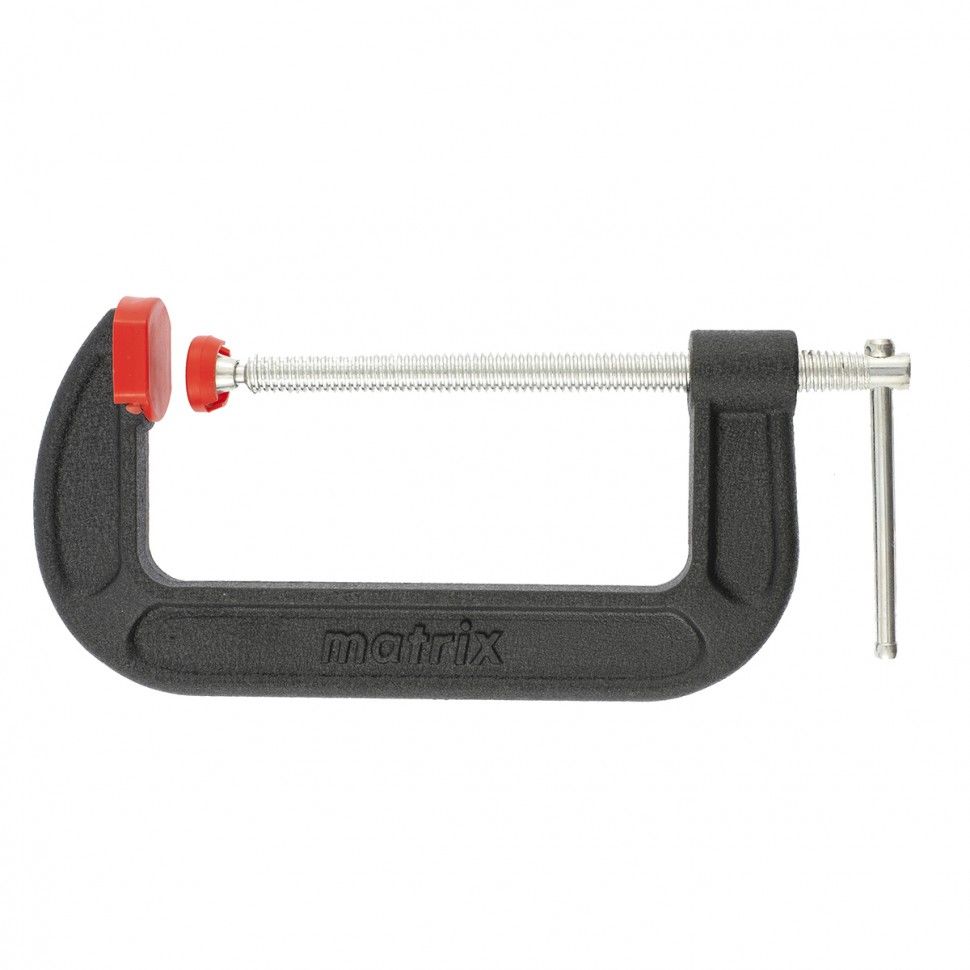 G-образная струбцина Matrix 20604 с максимальной шириной зажима 100 мм используется для фиксации заготовок или закрепления их на верстаке или станке. Позволяет склеивать детали, а также сверлить их, шлифовать, опиливать и проводить другие работы. Подходит для использования при сварке. Рама изготовлена из высокопрочного чугуна, поэтому выдерживает значительные усилия. Винт с трапециевидной резьбой обеспечивает надежную фиксацию предметов. Струбцина применяется в слесарном и столярном деле, а также в домашнем хозяйстве. ПреимуществаВинт изготовлен из стали, что повышает устойчивость конструкции к нагрузкам. Покрытие из порошковой краски препятствует образованию коррозии на раме и обеспечивает ее стойкость к механическим повреждениям. Пластиковые накладки на губках защищают обрабатываемые детали от появления дефектов на поверхности (перед сварочными работами накладки необходимо снять). Для вращения винта предусмотрен вороток, что экономит силы мастера при затягивании зажима.