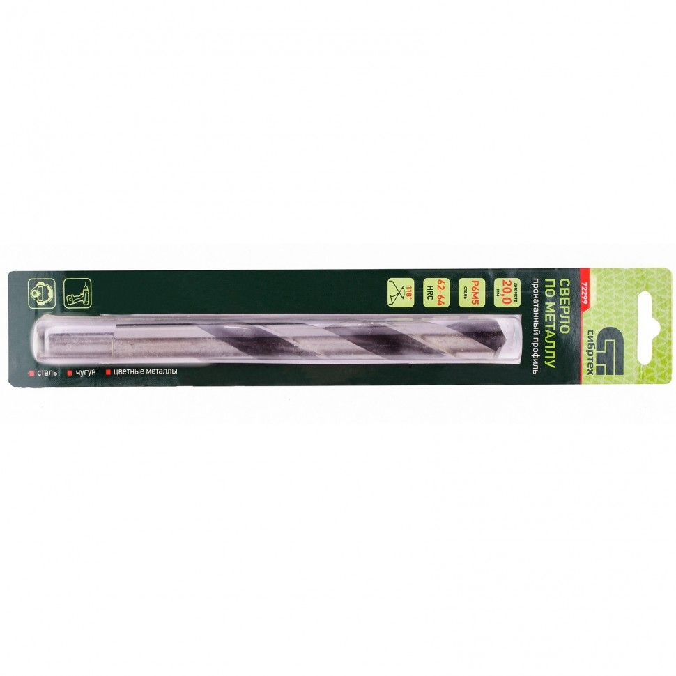 Сверло по металлу Сибртех 72299 диаметром 20,0 мм, имеет угол заточки 118°, оптимальный для получения отверстий в черных и тяжелых металлах, в том числе стали, чугуне и твердой бронзе. Отличается наиболее выгодной стоимостью по сравнению с другими моделями из стали P6M5. Используется для выполнения монтажно-сборочных работ, будет полезно в быту. ПреимуществаНадежность — сверло из быстрорежущей стали, легированной вольфрамом и молибденом, устойчиво к динамическим нагрузкам и перегреву. Высокий ресурс — режущие кромки твердостью 62-64 HRC долго держат заточку. Эффективная работа — благодаря полированной поверхности уменьшается трение сверла о стенки отверстия и улучшается отведение стружки. Надежная фиксация — цилиндрический хвостовик проточен, чтобы исключить проворачивание в патроне дрели.