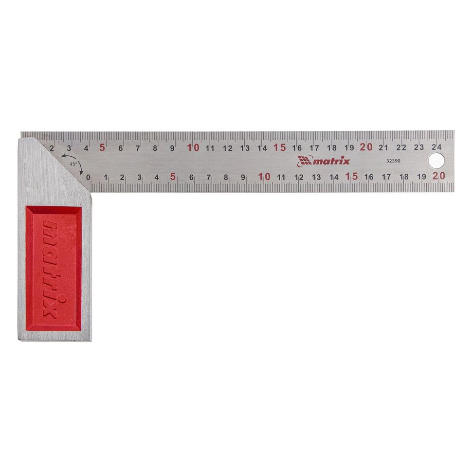 Стальной угольник Matrix 32390 длиной 250 мм, с градуировкой, — измерительный инструмент для построения и контроля углов. Будет полезен для проведения столярных и строительных работ. ПреимуществаПрочность — угольник изготовлен из стали. Защита от коррозии — основание инструмента окрашено. Удобная эксплуатация — измерительная шкала нанесена на обе стороны полотна. Возможность подвесного хранения — в корпусе имеется специальное отверстие.