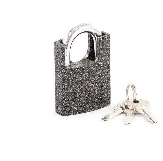 Навесной замок Сибртех 91637 шириной 50 мм, с защищенной дужкой, вешают на дверные проушины для защиты имущества от хищения. Дужка утоплена в корпус, что обеспечивает надежную защиту от взлома. Замок подойдет для установки на дверь склада, сарая, гаража или бытовки. ПреимуществаУстойчивость к повреждениям и климатическим воздействиям — корпус выполнен из углеродистой стали и покрыт молотковой эмалью, стальная дужка хромирована. Надежная защита от взлома — дужку сложно сломать, секретный механизм из латуни рассчитан на долгий срок службы. 3 ключа в комплекте — замком могут пользоваться несколько человек.